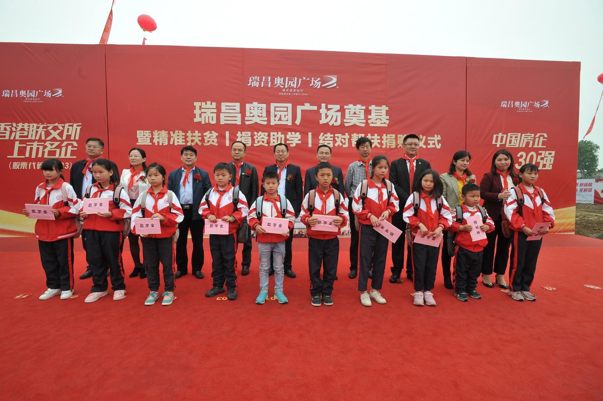 2019年,瑞昌奧園廣場精準扶貧捐資助學結對幫扶捐贈儀式