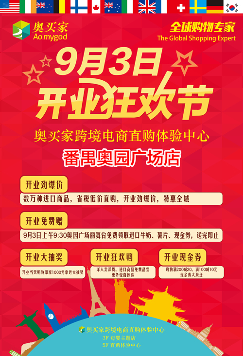 香港上市名企、中國房企30強(qiáng)中國奧園地產(chǎn)集團(tuán)(股票編號:3883)旗下跨境電商品牌,全球購物專家——奧買家(AO mygod),首家自營直購體驗(yàn)中心落戶番禺奧園廣場,將于9月3日盛大開業(yè)。這是廣州番禺真正意義上第一家大型跨境電商直購體驗(yàn)中心。從此,番禺及周邊市民將在家門口就可以購買數(shù)萬種原裝進(jìn)口商品,也可登錄奧買家網(wǎng)上平臺購買低價(jià)保稅商品。