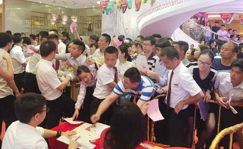 從早上7點(diǎn)開(kāi)始就有大批客戶來(lái)現(xiàn)場(chǎng)簽到、排隊(duì)等候,看不到尾的長(zhǎng)龍預(yù)示著一場(chǎng)嚴(yán)酷的搶鋪大戰(zhàn)蓄勢(shì)待發(fā)。10點(diǎn)開(kāi)始,30分鐘售罄,16秒一套的速度再創(chuàng)奇跡!