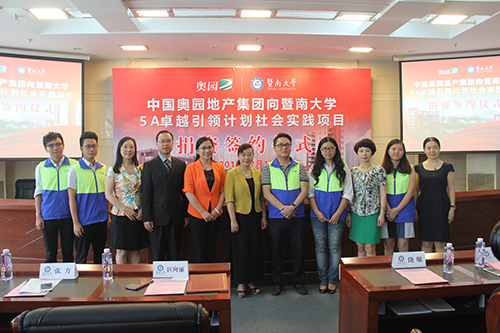 (2016年7月15日——廣州)7月15日,中國奧園地產(chǎn)集團(tuán)股份有限公司與暨南大學(xué)就該校“5A卓越引領(lǐng)計劃”優(yōu)秀學(xué)生社會實踐項目正式簽訂合作協(xié)議,將由奧園提供必要支持協(xié)助暨南大學(xué)部分優(yōu)秀學(xué)生參與社會實踐活動。這是奧園集團(tuán)“2016奧園‘筑’夢”系列活動之一,是集團(tuán)為推動青年成長成才、支持教育事業(yè)發(fā)展而積極承擔(dān)的社會責(zé)任。