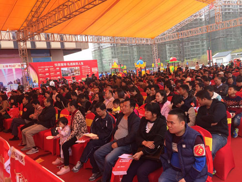 當(dāng)天上午,營銷中心外廣場人聲鼎沸,場面爆棚。開盤現(xiàn)場被擠的水泄不通,搖號(hào)等候區(qū)早已座無虛席。在等待搖號(hào)的時(shí)間里,人們紛紛就各自的心儀戶型進(jìn)行交流。