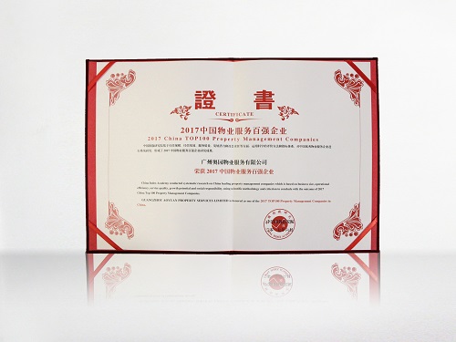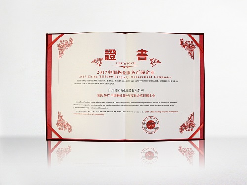 “2017中國(guó)物業(yè)服務(wù)百?gòu)?qiáng)企業(yè)”證書