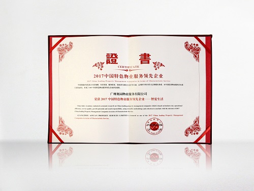 “2017中國(guó)特色物業(yè)服務(wù)領(lǐng)先企業(yè)——智愛生活”證書