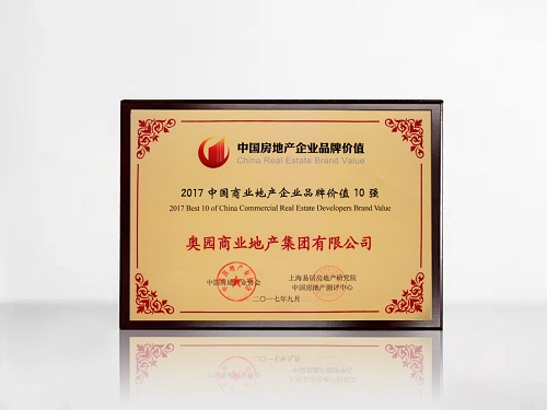 此外,9月13日,由中國房地產(chǎn)業(yè)協(xié)會和中國房地產(chǎn)測評中心聯(lián)合主辦的“2017中國房地產(chǎn)企業(yè)品牌價值測評成果發(fā)布會”中,奧園商業(yè)地產(chǎn)集團也榮獲“2017中國商業(yè)地產(chǎn)企業(yè)品牌價值10強”,兩天之內(nèi)連獲兩大權(quán)威獎項。