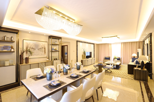 國慶期間開放的兩套精裝樣板房,戶型分別為170㎡和220㎡,為現(xiàn)代簡約風(fēng)格。創(chuàng)新蝶形拼接戶型,戶戶視角分離,保證私密起居。其中220㎡四房兩廳三衛(wèi),擁85.7%高使用率,大格局客廳連餐廳,10米進深、5.4米開間,墅質(zhì)享受。三套間設(shè)計,主臥享4.2米開間,7米進深,坐擁全景大陽臺,24小時美景熏陶。