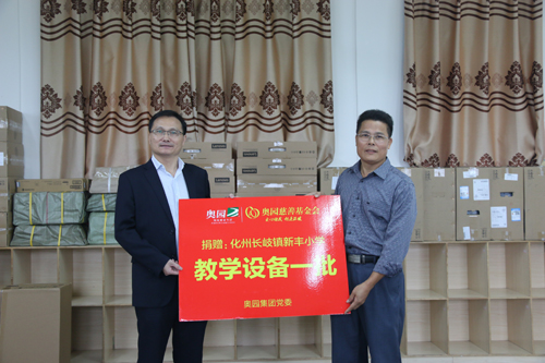 自2017年4月26日奧園集團(tuán)黨委、北京師范大學(xué)南國奧園實(shí)驗(yàn)學(xué)校與化州新豐小學(xué)結(jié)對(duì)共建以來,一直保持緊密的教研幫扶聯(lián)系。16日下午,奧園集團(tuán)領(lǐng)導(dǎo)一行迎著臺(tái)風(fēng)冒著大雨再次來到新豐小學(xué),化州市長岐鎮(zhèn)人大主任陳超英、新豐村委書記李亞統(tǒng)、新豐小學(xué)校長李超藝等均出席了捐贈(zèng)儀式,奧園集團(tuán)黨委書記、總裁郭梓寧代表奧園集團(tuán)黨委、奧園慈善基金會(huì)為新豐小學(xué)送上了電腦、多功能速印一體機(jī)及圖書一批等。這一愛心之舉解決了新豐小學(xué)沒有教學(xué)電腦、沒有試卷資料印刷設(shè)備的困擾,切實(shí)提高了教師學(xué)生的教學(xué)與學(xué)習(xí)條件。