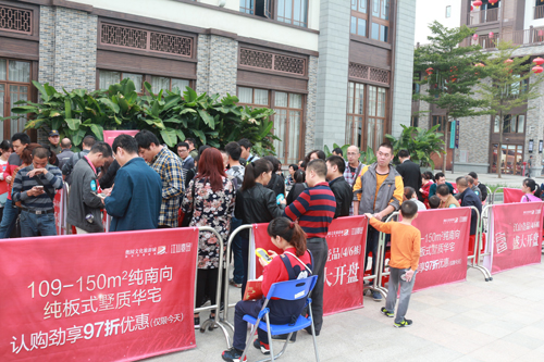 (2017年11月11日——韶關)11月11日,奧園“江山壹品”迎來盛大開盤。一場罕見的搶房之爭激烈上演,現(xiàn)場購房場面異?;鸨揭计吩傧粕爻菗尫繜岢?!