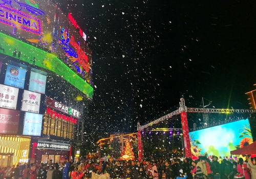 五華奧園廣場是五華首家且唯一的購物中心,不僅開創(chuàng)了五華商業(yè)的新模式,也為五華市民帶來了“吃、喝、玩、樂、購”的一站式消費新體驗。此次周年慶活動,讓廣大客戶感受了五華的第一場“雪”,并為市民帶來“華仔、學友”的深情歌唱表演,現(xiàn)場更有中獎率100%的抽獎活動、超市千種商品五折購以及四樓餐飲全場5折等福利,加之搖一搖搶紅包/鉆戒、4米巨型蛋糕齊分享等眾多精彩活動,令五華市民流連忘返。