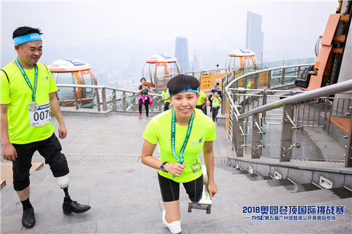 此次參賽的1000多名運(yùn)動(dòng)愛好者中,包含幾名“特殊”運(yùn)動(dòng)員,他們是已退役的殘疾運(yùn)動(dòng)員,其中肖唐生曾參加市級殘疾人運(yùn)動(dòng)會(huì),并獲得宜春市乒乓球比賽第二名,作為深圳市龍崗區(qū)點(diǎn)亮生命殘疾人藝術(shù)團(tuán)演員創(chuàng)始人的他在完賽后興奮的表示:“非常開心能夠參與到這一次奧園舉辦的登高賽,能夠重新回到賽場享受競爭的樂趣,能夠完成1000多級的臺(tái)階挑戰(zhàn)已經(jīng)超越了比賽本身,挑戰(zhàn)了自己。能夠在完成比賽后,登頂廣州最高地標(biāo),俯視廣州全貌真的是太興奮,太激動(dòng)了”。