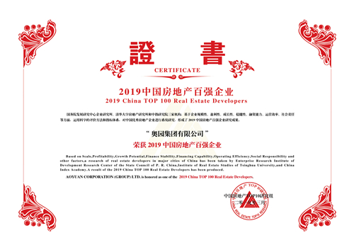 奧園集團獲評為“2019中國房地產(chǎn)百強企業(yè)”第26名