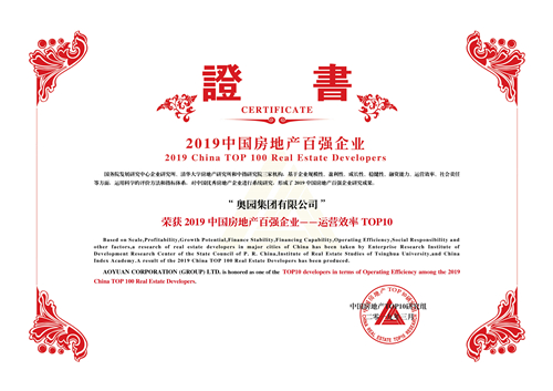 此外,奧園集團還獲得“2019中國房地產(chǎn)年度扶貧標桿企業(yè)第6名”、“2019中國房地產(chǎn)百強企業(yè)—運營效率TOP10第6名”、“2019中國房地產(chǎn)百強企業(yè)—成長性TOP10第9名” 等一系列重要獎項。