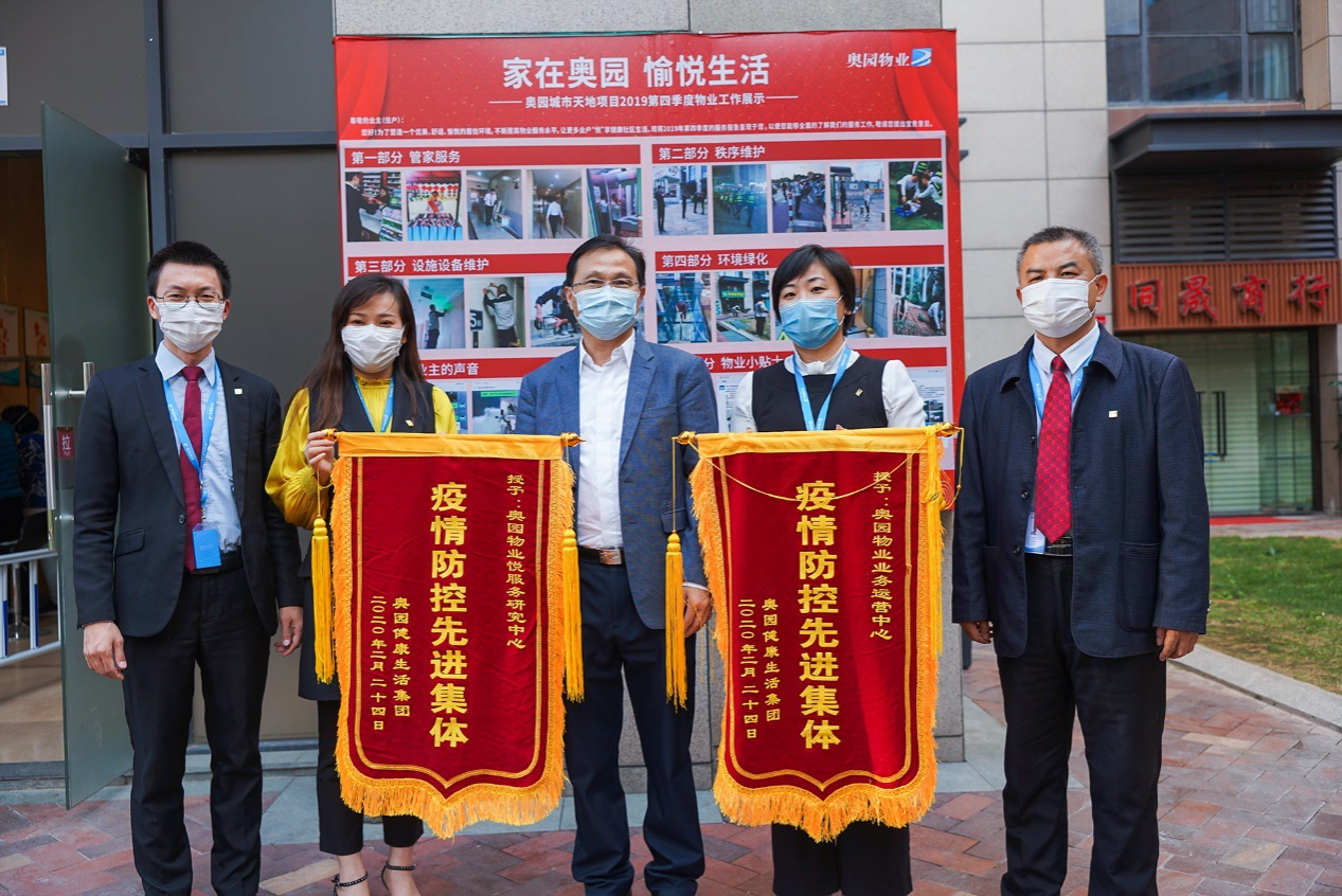 向奧園城市天地頒發(fā)抗疫先進集體錦旗