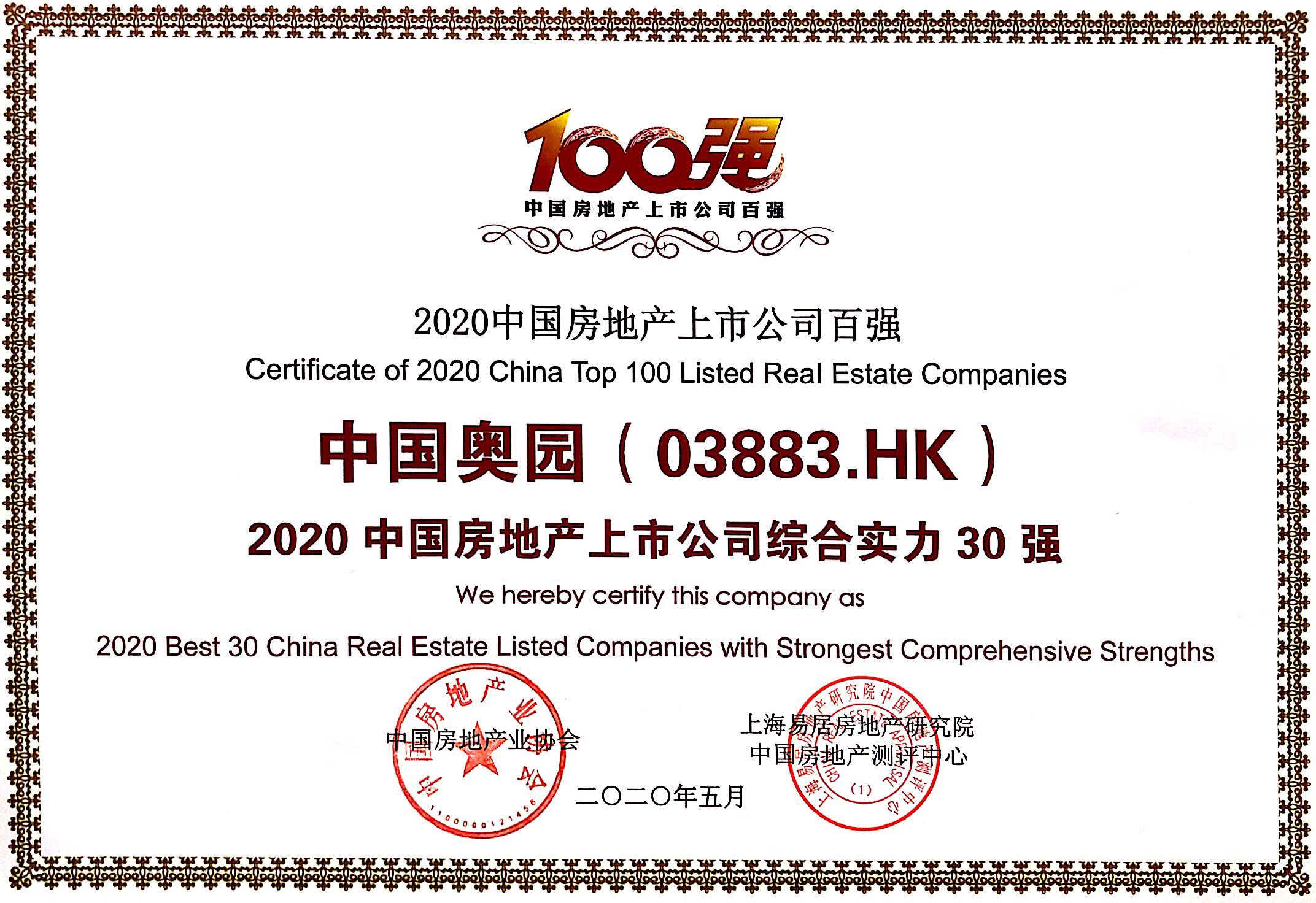 中國(guó)奧園躍升“2020中國(guó)房地產(chǎn)上市公司綜合實(shí)力30強(qiáng)”第24名