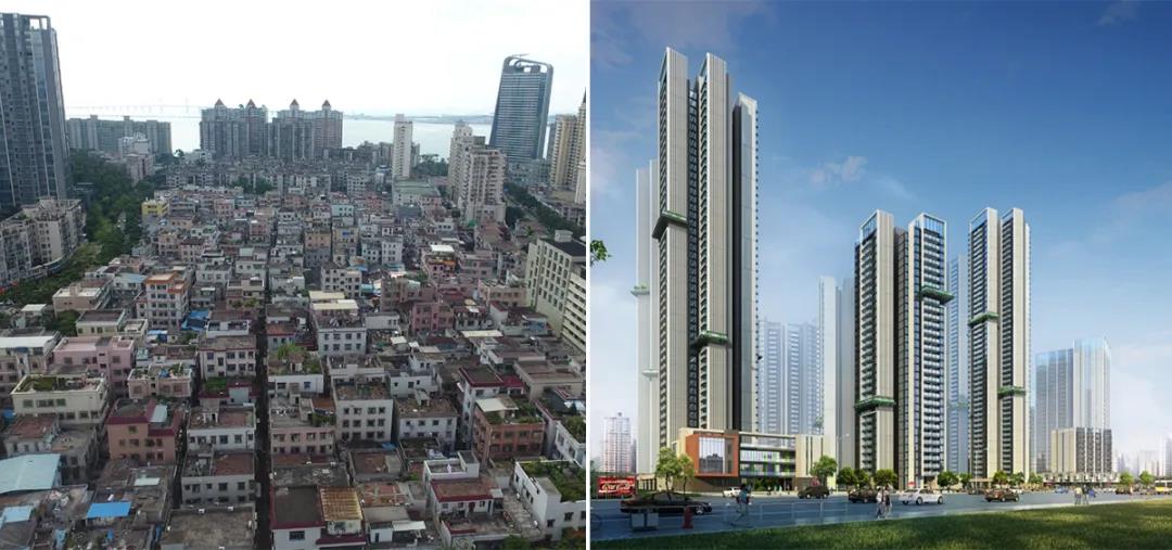 珠海拱北聯(lián)安村原狀(左)和效果圖(右)