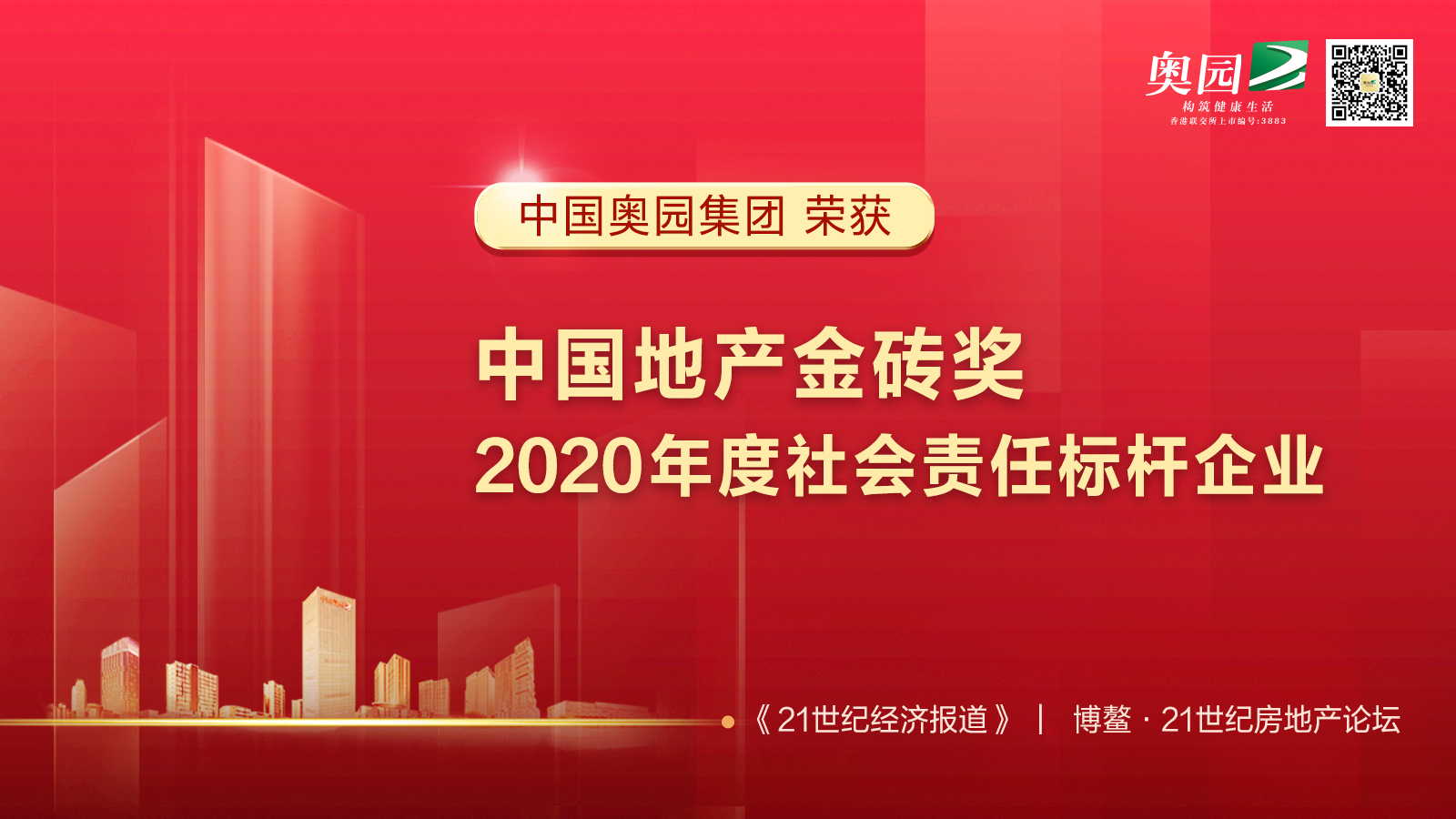責任賦能企業(yè)發(fā)展 中國奧園榮膺 “2020年度中國地產(chǎn)金磚獎”