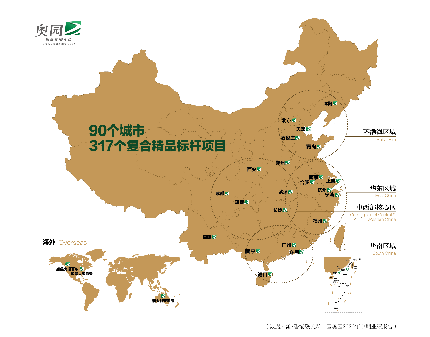 截至2020年6月30日,中國(guó)奧園在90個(gè)城市匠心筑造317個(gè)精品地產(chǎn)項(xiàng)目,覆蓋華南、中西部核心區(qū)、華東和環(huán)渤海區(qū)域,中國(guó)香港、澳門以及澳大利亞、加拿大等國(guó)家和地區(qū)。
