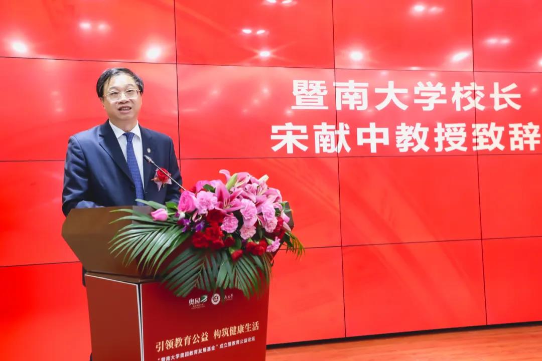 金秋九月,丹桂飄香。9月23日,“暨南大學(xué)奧園教育發(fā)展基金”成立暨教育公益論壇在暨南大學(xué)召開。暨南大學(xué)校長宋獻(xiàn)中、黨委副書記孫彧以及相關(guān)部處學(xué)院領(lǐng)導(dǎo),中國奧園集團(tuán)董事會主席郭梓文,集團(tuán)副總裁郭士國,集團(tuán)副總裁、奧園科技集團(tuán)總裁胡冉,奧園健康生活集團(tuán)總裁蘇波等領(lǐng)導(dǎo)嘉賓共同出席。