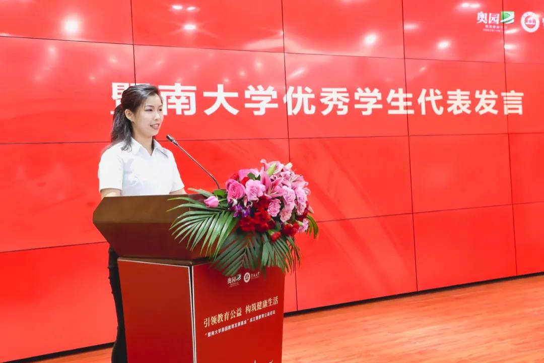 確保貧困家庭子女都能接受公平而有質(zhì)量的教育,是夯實脫貧攻堅根基所在。郭梓文主席致辭時表示,很高興與暨南大學(xué)聯(lián)合設(shè)立教育發(fā)展基金,共同聚焦貧困地區(qū)教育發(fā)展短板,不斷組織實施教育扶貧全覆蓋行動,持續(xù)為品學(xué)兼優(yōu)的貧困學(xué)子提供勵志獎學(xué)金,幫助他們學(xué)習(xí)成長、開拓視野,成為棟梁之才。未來,中國奧園也將持續(xù)推動暨南大學(xué)校際交換和訪學(xué)項目、博士后人才創(chuàng)新發(fā)展、獎學(xué)獎教、學(xué)科建設(shè)與生命科學(xué)技術(shù)科研成果轉(zhuǎn)化等,共同培育一流人才、創(chuàng)一流成果、作一流貢獻(xiàn)。
