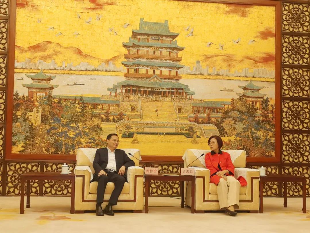 江西省委常委、副省長吳忠瓊(右)與奧園集團黨委書記、總裁郭梓寧(左)舉行會晤