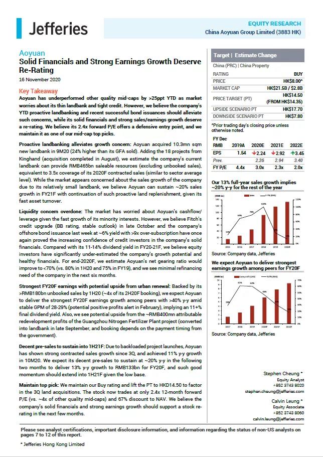 惠譽(yù)于2020年10月底將奧園信貸評(píng)級(jí)由“BB-”調(diào)升為“BB”,2020年11月初奧園亦成功發(fā)行票息5.98%的美元債,獲逾9倍超額認(rèn)購(gòu),足證資本市場(chǎng)對(duì)公司的財(cái)務(wù)狀況充滿信心。
