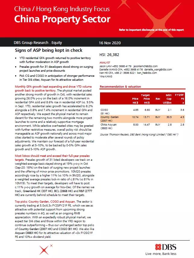 富瑞金融、星展銀行、銀河-聯(lián)昌證券、建銀國(guó)際:2020年全年合同銷售達(dá)標(biāo)在望
