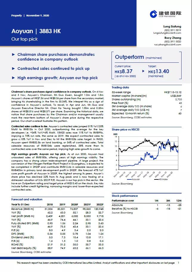 中國(guó)奧園集團(tuán)董事會(huì)主席郭梓文于2020年11月增持奧園共280萬(wàn)股股份。此前,郭梓文主席及執(zhí)行董事陳嘉揚(yáng)分別于2020年4月及6月增持奧園100萬(wàn)股及35萬(wàn)股股份。建銀國(guó)際等認(rèn)為,奧園接連獲得增持,充分反映出奧園管理層對(duì)公司發(fā)展充滿信心。