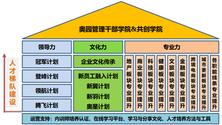 而在人才培養(yǎng)方面,中國(guó)奧園也已經(jīng)建立起一套管理與專業(yè)并行,分層級(jí)多元化的人才培養(yǎng)體系。
