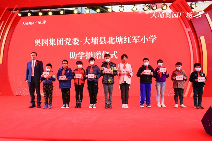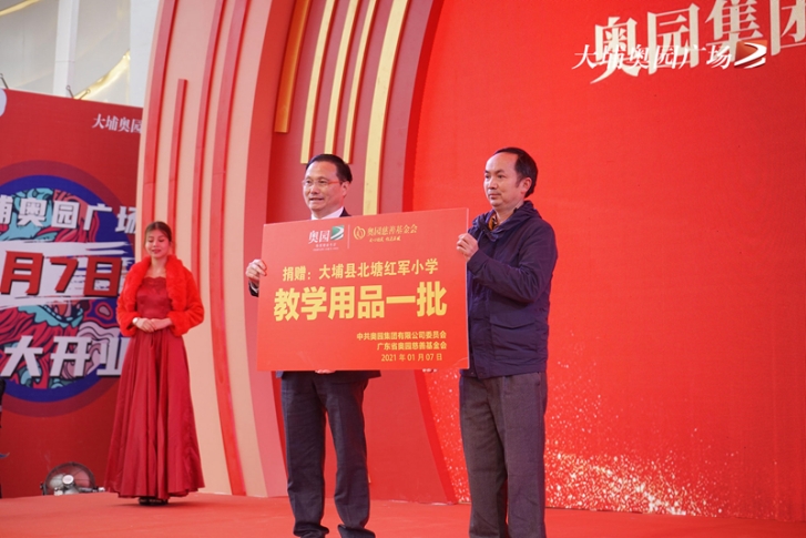 大埔縣委書記朱漢東、縣長熊鋒松、縣人大常委會主任黃建庭,奧園集團(tuán)黨委書記、總裁郭梓寧,奧園商業(yè)地產(chǎn)集團(tuán)副總裁尹立鵬,奧園健康生活集團(tuán)常務(wù)副總裁雷易群等領(lǐng)導(dǎo)嘉賓共同出席典禮。慶典上,奧園集團(tuán)黨委給結(jié)對幫扶的大埔縣紅軍小學(xué)捐贈了一批教學(xué)設(shè)備,并為貧困生頒發(fā)了助學(xué)金。