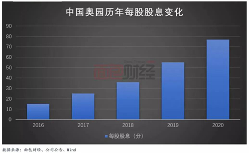 中國奧園2020年擬派發(fā)末期股息每股人民幣66分以及特別股息每股人民幣11分,合計派息金額達(dá)到每股人民幣77分(相當(dāng)于每股91.5港仙),同比增長40%。按照公司3月29日收盤價7.63港元/股進(jìn)行測算,股息率達(dá)到11.99%。