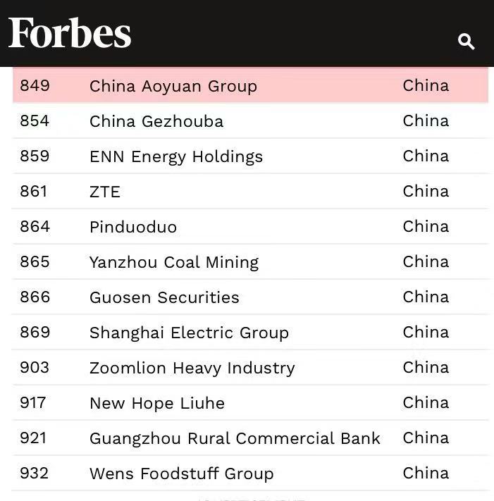 躍升303位!中國奧園躋身福布斯全球企業(yè)1000強(qiáng)