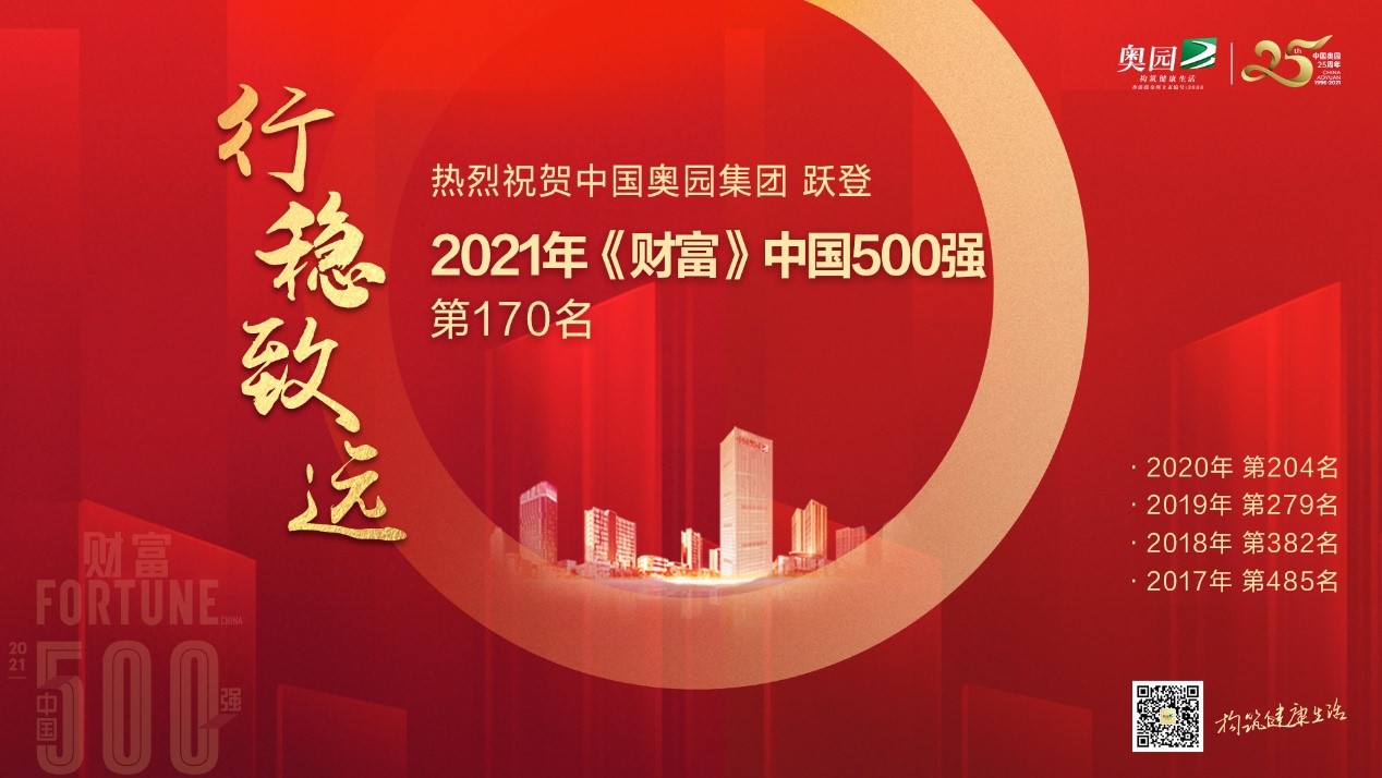 2021《財富》中國500強揭榜 中國奧園排名五連升 榮列第170名