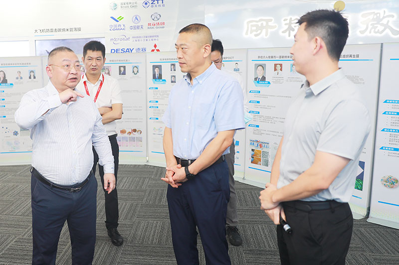 胡冉總(左)為楊景總(中)介紹納米項(xiàng)目合作進(jìn)展