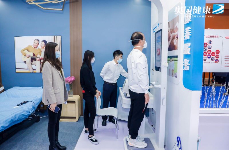 在展廳內(nèi),悅服務(wù)及高端服務(wù)區(qū)向觀眾展示了奧園健康對(duì)物業(yè)服務(wù)價(jià)值與內(nèi)涵的持續(xù)探索創(chuàng)新;社區(qū)團(tuán)購(gòu)區(qū)線上線下聯(lián)合,創(chuàng)新展示供應(yīng)生態(tài)鏈,觀眾掃碼進(jìn)入小程序即可下單大量?jī)?yōu)質(zhì)商品??叼B(yǎng)體驗(yàn)區(qū)的多功能護(hù)理床、健康體檢一體機(jī)與“奧悅家”6A智慧社區(qū)的智能屏和可視對(duì)講機(jī)等設(shè)備更是吸引了眾多觀眾親身體驗(yàn),感受前沿智能的健康服務(wù)。此外,現(xiàn)場(chǎng)設(shè)置了網(wǎng)紅打卡點(diǎn)與“開(kāi)啟智慧生活”互動(dòng)區(qū),以“場(chǎng)景+體驗(yàn)”模式,點(diǎn)燃活動(dòng)氛圍。