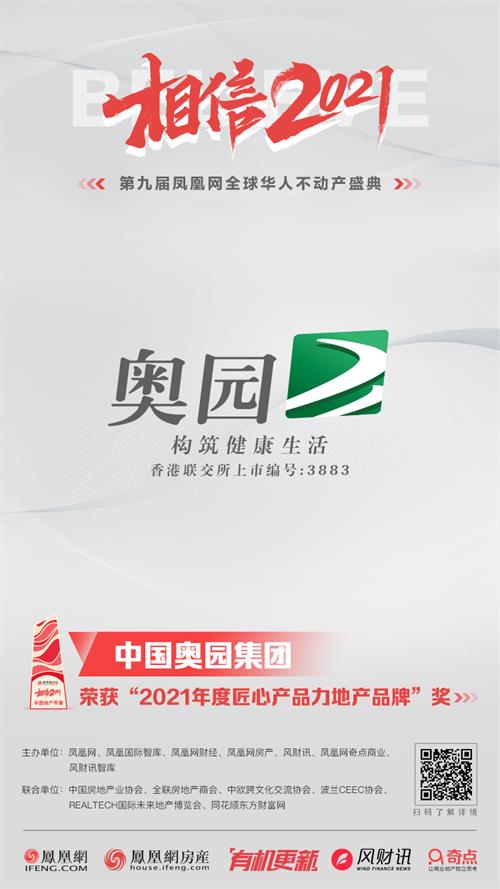 中國奧園集團榮獲“2021年度匠心產(chǎn)品力地產(chǎn)品牌”獎