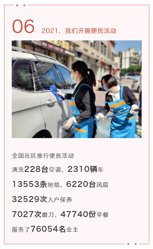 為全面提升服務(wù)品質(zhì),奧園在全國社區(qū)持續(xù)推行便民活動,清洗空調(diào)、車輛,入戶保養(yǎng),送早餐上門等便民服務(wù),全面改善業(yè)主居住體驗,有效提升業(yè)主滿意度。