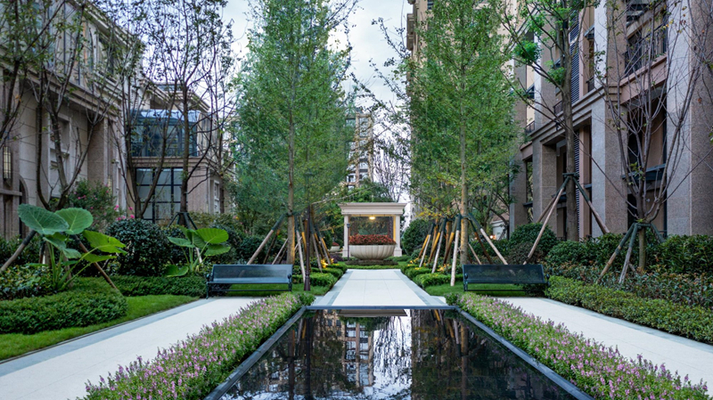 ●成都奧園蔚藍(lán)卡地亞云墅以浪漫的法式藝術(shù),營(yíng)造林間精致生活,延續(xù)奢居精工品質(zhì),匠心工藝呈現(xiàn)完美交付。項(xiàng)目曾榮獲2021年園冶杯地產(chǎn)園林大區(qū)類景觀銀獎(jiǎng)。