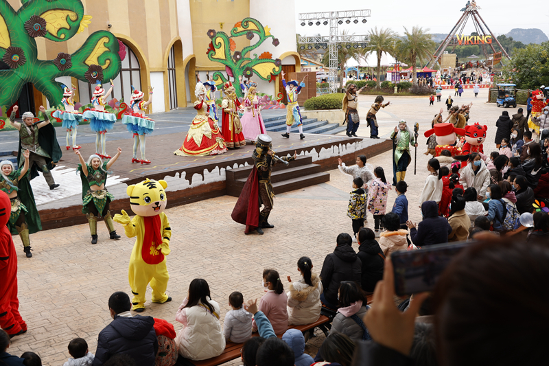 為迎接虎年新春到來(lái),奧園英德巧克力王國(guó)精心推出“巧克力國(guó)王節(jié)”,多味市集、民俗攤位、互動(dòng)演藝、趣味巡園等驚喜活動(dòng)層出不窮。景區(qū)以專業(yè)的推廣、創(chuàng)新的產(chǎn)品、優(yōu)惠的價(jià)格和濃厚的節(jié)日氛圍,吸引游客“花式”游玩,讓游客沉浸式感受濃濃的“廣式年味”。大年初一,《女王的盛宴》重磅上演,當(dāng)天便得到游客們的高度贊賞,好評(píng)不斷。