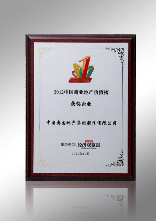 (2012年12月13日——北京)由《經(jīng)濟觀察報》主辦的“2012年度中國商業(yè)地產(chǎn)價值榜”評選活動在北京隆重舉行,中國奧園地產(chǎn)集團憑借企業(yè)綜合實力以及卓越的商業(yè)運營能力,贏得了業(yè)內(nèi)人士的認(rèn)可,光榮上榜,旗下項目奧園廣場獲頒“2012中國商業(yè)地產(chǎn)價值榜杰出項目”獎項。