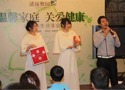 (2012年4月7日——清遠(yuǎn))春季為四時之首,是保健養(yǎng)生的重要時機,養(yǎng)生計劃也需從春天開始,一場以“溫馨家庭,關(guān)愛健康”為主題的春季養(yǎng)生分享會在清遠(yuǎn)奧園銷售中心溫情開講。主辦方清遠(yuǎn)奧園特邀保健養(yǎng)生學(xué)資深講師與眾多來訪嘉賓探討?zhàn)B生之道,分享春季養(yǎng)生的知識和方法。活動吸引了來自清遠(yuǎn)以及周邊城市的近百名客戶熱情參與,受到廣大客戶的一致好評。