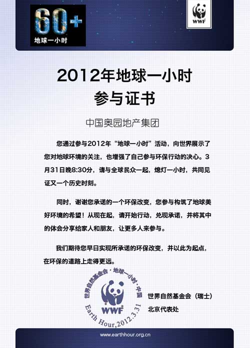 奧園積極參與“2012地球一小時(shí)”環(huán)?;顒?dòng)