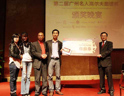郭梓寧先生代表養(yǎng)生酒店向獲獎嘉賓贈送價值20000元的獎品