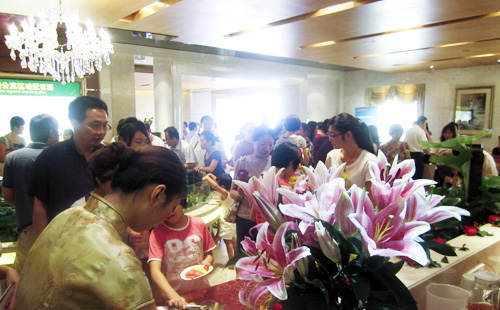 當天上午8:30,銷售中心已是人潮涌動,銷售模型前聚集了30余批前來咨詢的客戶,銷售人員即入崗位一時應(yīng)接不暇。據(jù)銷售人員統(tǒng)計,當日來電200多批,到訪客戶350多批700余人次,8月7、8兩日,申請辦理“奧園會高爾夫會員”資格登記的客戶已過二百批。