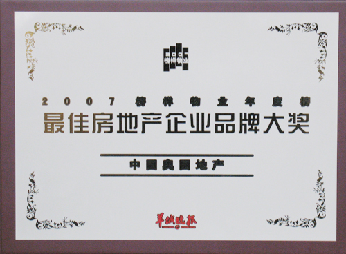中國奧園地產(chǎn)集團榮獲“2007年度最佳房地產(chǎn)企業(yè)品牌”稱號