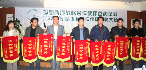 奧園集團(tuán)副總裁、CTO胡大為先生代表奧園地產(chǎn)集團(tuán)宣布2007年度優(yōu)秀合作伙伴的表彰決定,對(duì)過去一年表現(xiàn)出色的設(shè)計(jì)、施工等合作單位分別授予最佳設(shè)計(jì)服務(wù)獎(jiǎng)、最佳工程質(zhì)量獎(jiǎng)、最佳工程進(jìn)度獎(jiǎng)、安全文明施工獎(jiǎng)獎(jiǎng)旗。合作伙伴紛紛表示要與奧園地產(chǎn)集團(tuán)在地產(chǎn)業(yè)務(wù)上密切合作,一如既往,同甘苦、共進(jìn)退、同成長。