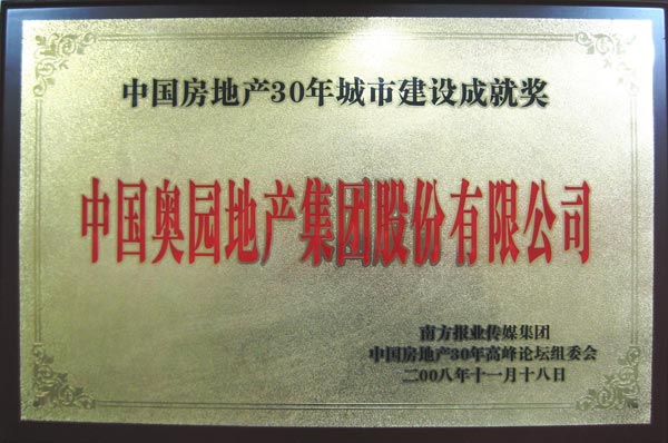 中國(guó)奧園地產(chǎn)集團(tuán)榮獲“中國(guó)房地產(chǎn)30年城市建設(shè)成就獎(jiǎng)”榮譽(yù)