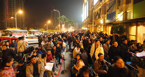 自11月以來,重慶樓市陷入冷淡,直至奧園康城2期堅果社區(qū)的火爆熱銷才始破僵局。原本準備于12月13日開盤的全新奧園康城2期堅果社區(qū),自從12月9日“37平方米-104平方米歲末大回饋,3350-3950元/平方米,不同樓層分段一口價,先到先得”的廣告信息一“出街”,立即引起了業(yè)界、媒體、消費者的強烈反響與驚呼,紛紛奔走相告。9日、10日、11日三天整個奧園康城銷售中心內(nèi)被看房者圍得水泄不通。客戶累積達1000多組,由于是“先到先得”選房,很多客戶由于怕選不到房提前兩天就已經(jīng)開始排隊了,11日下午5點多便有客戶開始排隊,晚上8點自發(fā)排隊客戶人數(shù)急增至500組,12點即達到1000多組,并還在不斷遞增之中,由于排隊客戶過多,堅果社區(qū)提前至12日盛大開盤。