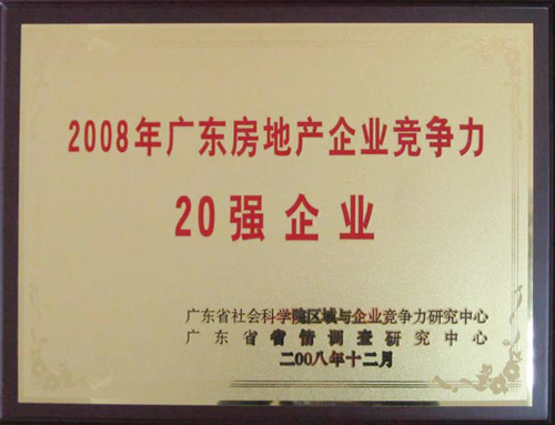 中國奧園地產(chǎn)集團(tuán)入選2008年廣東房地產(chǎn)企業(yè)競爭力20強(qiáng)