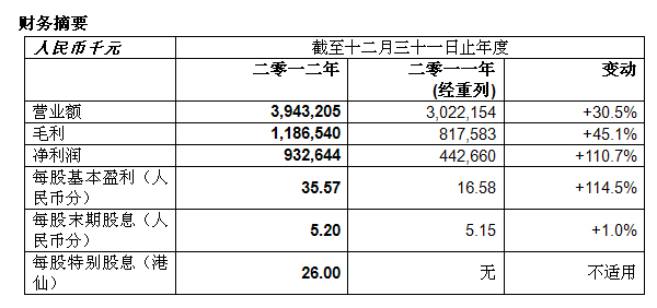 業(yè)績表現(xiàn)卓越建議派發(fā)末期及特別股息分別為人民幣5.2分及26港仙