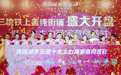 (2013年7月25日——廣州)奧園城市天地首批三地鐵上蓋純街鋪開盤暨十大主力商家進駐儀式在奧園高爾夫酒店隆重舉行,150套45-90平方米臨街商鋪吸引逾500多組客戶搶購,當(dāng)天取得認購額約6億的銷售佳績。