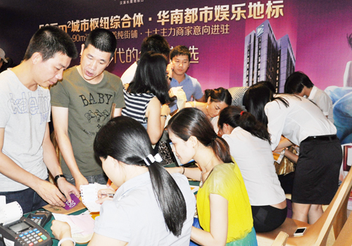 招商成果發(fā)布簽約儀式后,選鋪正式開始,奧園城市天地首期45-90平方米三地鐵上蓋純街鋪引發(fā)搶購??蛻舸蠖假徺I了兩套甚至多套旺鋪,位置突出的商鋪更被多人“哄搶”,場面熱烈。甚至有投資者一次選購半條街、一條街!認購客戶紛紛表示:“比較看好奧園城市天地在未來廣州CBD新中軸的前景,而且還是三地鐵上蓋,客流量不是問題,業(yè)態(tài)也是領(lǐng)先潮流,性價比極高,升值空間巨大?!?/p>